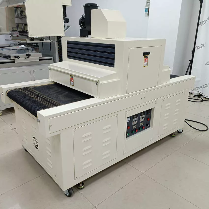 Als professioneller Hersteller in China möchten wir Ihnen die hocheffiziente HOYSTAR-UV-Härtungsmaschine mit 1000 mm breitem Förderband anbieten. Die Maschine eignet sich zum Trocknen von UV-Tinte, die auf einer Vielzahl von Materialien gedruckt wird, darunter Papier, PVC und andere weiche oder dünne Substrate. Die Maschine kann problemlos mit Siebdruckern verbunden werden, um eine nahtlose Aushärtung der UV-Tinte zu erreichen. Mit stabiler Leistung und umfassender Kompatibilität erfüllt es effektiv die professionellen Härtungsanforderungen von Kunden für verschiedene Druckanwendungen.
