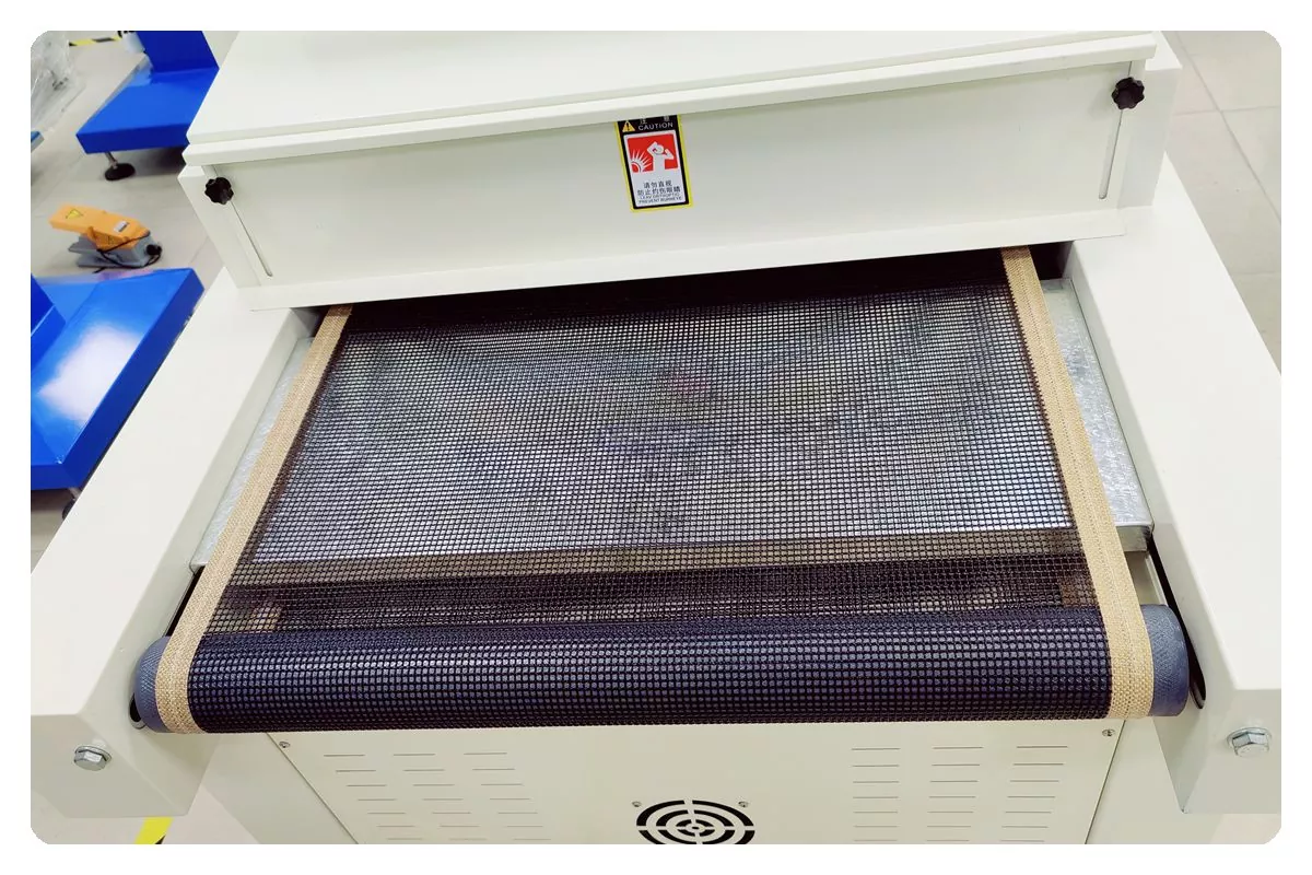Das 1000 mm breite Förderband der UV-Härtungsmaschine wird von einem Elektromotor gesteuert und seine Geschwindigkeit kann je nach erforderlicher Produktionsgeschwindigkeit angepasst werden, um unterschiedlichen Trocknungsanforderungen gerecht zu werden.