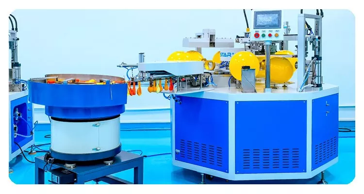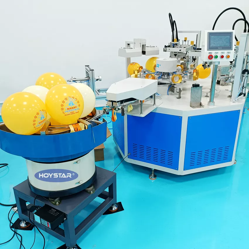 HOYSTAR ist ein zuverlässiger Hersteller und Lieferant in China; Diese HOYSTAR 2-Farben-Ballons-Siebdruckmaschine mit automatischer Zuführung ist für den Druck auf Latexballons konzipiert. Ausgestattet mit Dreharbeitstisch, automatischer Beladung, automatischem Blasen, automatischer Drehung, automatischer Trocknung und automatischer Entladefunktion. SPS-Touchscreen-Steuerung, benutzerfreundliche Oberfläche für sichere, intuitive Bedienung. Die Maschine vereint Geschwindigkeit, Präzision und Benutzerfreundlichkeit.