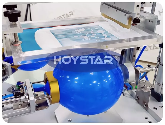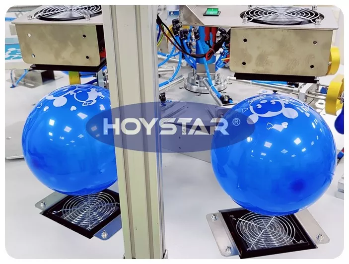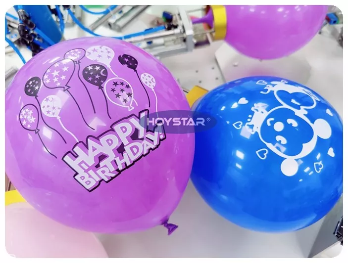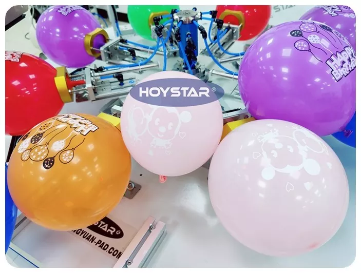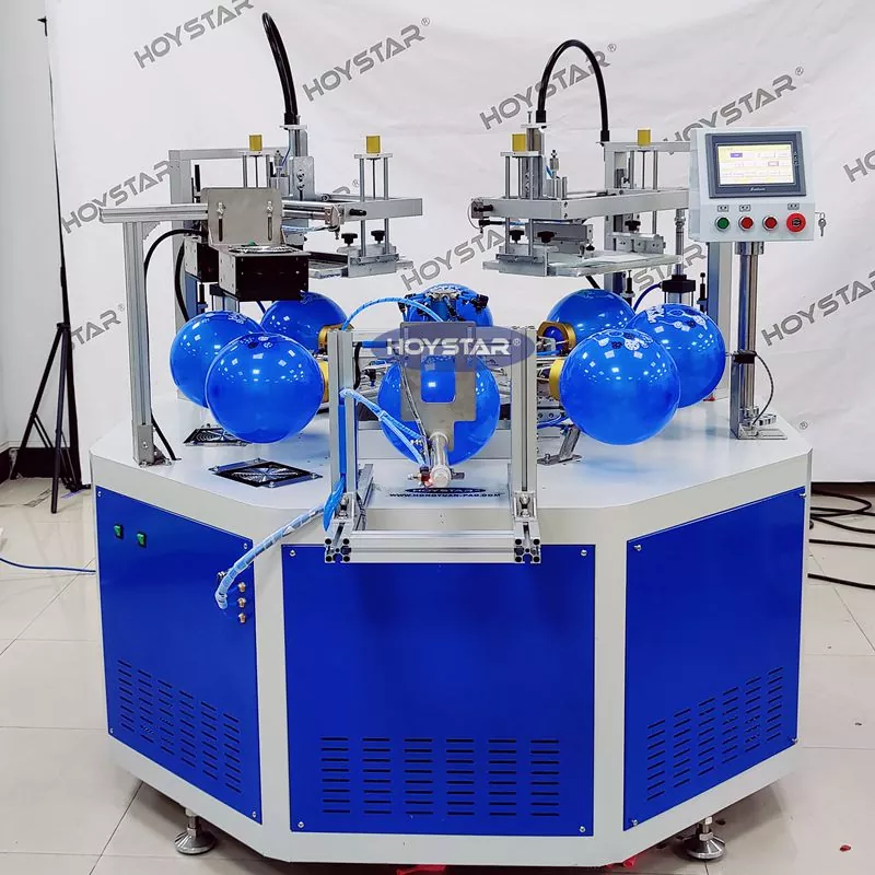 Als professioneller Hersteller und Lieferant ist die HOYSTAR Automatic 2 Color Balloons Siebdruckmaschine für den Druck auf Latexballons konzipiert. Ausgestattet mit rotierendem Arbeitstisch, automatischer Blas-, automatischer Rotations-, automatischer Trocknungs- und automatischer Entladefunktion. SPS-Touchscreen-Steuerung, benutzerfreundliche Oberfläche für sichere, intuitive Bedienung. Die Maschine vereint Geschwindigkeit, Präzision und Benutzerfreundlichkeit.