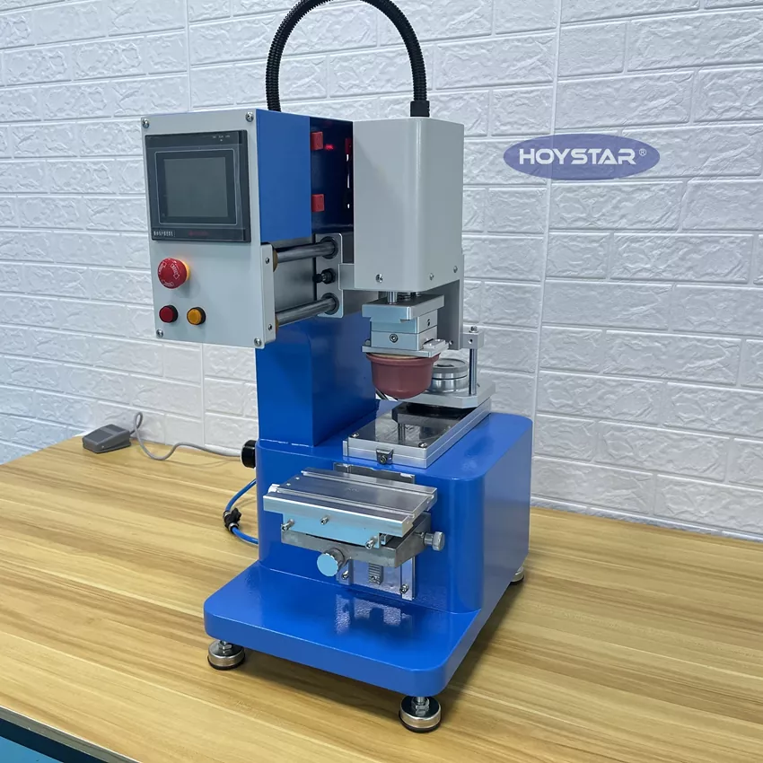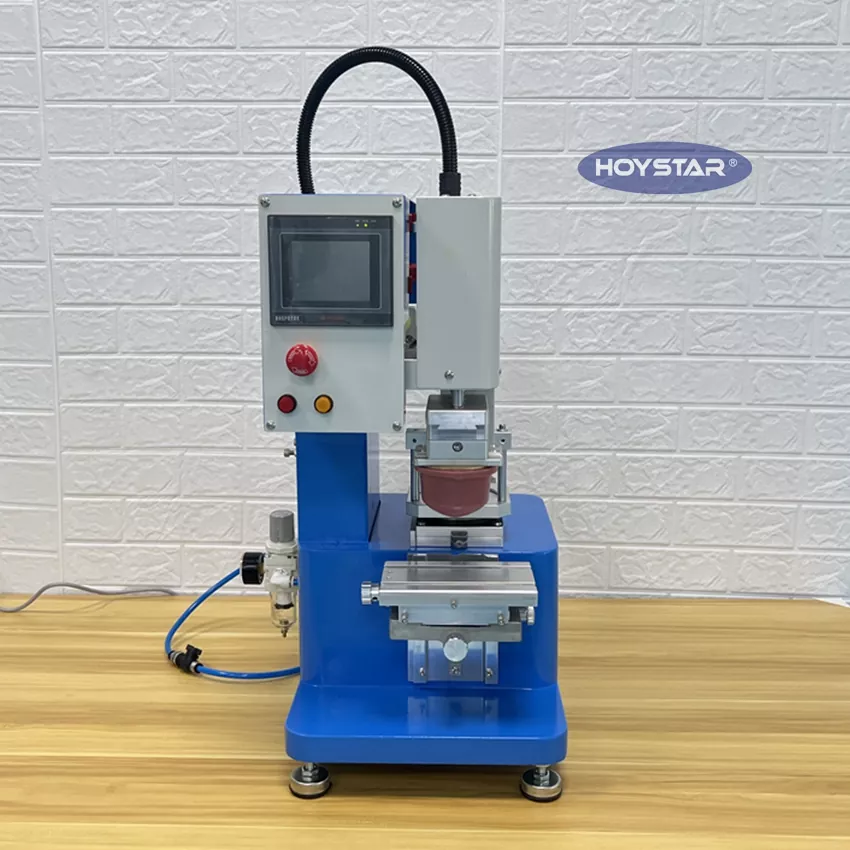 Als professioneller Hersteller in China möchten wir Ihnen die hocheffiziente einfarbige Desktop-Tampondruckmaschine HOYSTAR anbieten. Unsere Maschinen verwenden eine SPS- und Touchscreen-Steuerung und eignen sich zum Drucken verschiedener Produkte. Die Maschine zeichnet sich durch einen wettbewerbsfähigen Preis, geringe Stellfläche und stabile Druckqualität aus.