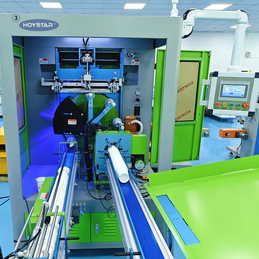 Als professioneller Hersteller in China möchten wir Ihnen die hocheffiziente vollautomatische MultiColor-Siebdruckmaschine für Kunststoffbecher HOYSTAR anbieten, eine hocheffiziente Siebdrucklösung, die auf bestimmte Szenarien zugeschnitten ist – unsere spezialisierte vollautomatische Siebdruckmaschine für Becher. Dieses Gerät ist für das Bedrucken von Bechern konzipiert und verfügt über einen vollständig vollautomatischen Arbeitsablauf: automatisches Laden, automatisches Drucken, automatisches Entladen und LED-UV-Härtung. Reduziert die Arbeitskosten erheblich und minimiert auch Fehler beim Drucken, wodurch stabile Druckergebnisse in der Massenproduktion gewährleistet werden.