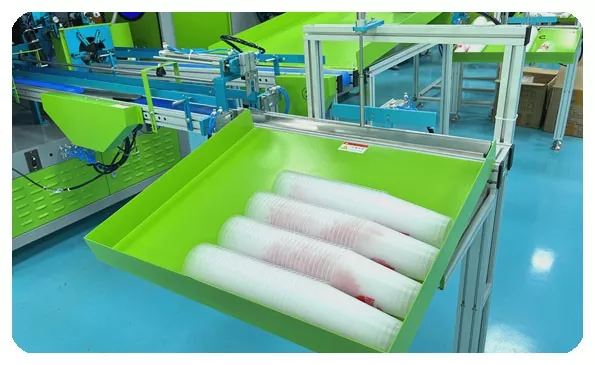 Hot-Tags: Vollautomatische Siebdruckmaschine für mehrfarbige Kunststoffbecher