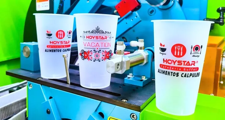 Diese vollautomatische Siebdruckmaschine für mehrfarbige Kunststoffbecher von HOYSTAR eignet sich zum Bedrucken einer Vielzahl von Bechertypen. Es eignet sich zum Bedrucken von Plastikbechern (z. B. Kaltgetränke-Plastikbechern), Milchteebechern (einschließlich der in der Gastronomie üblichen Papier- und Kunststoffvarianten), Kaffeetassen, Pappbechern, Bechern und Mehrwegbechern (umweltfreundliche wiederverwendbare Plastikbecher).