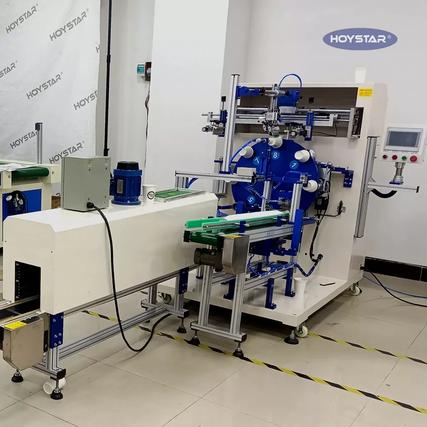 Als professioneller Hersteller in China möchten wir Ihnen die hocheffiziente vollautomatische 1-Farben-Zylindersiebdruckmaschine HOYSTAR für PP/PET-Becher anbieten, eine hocheffiziente Siebdrucklösung, die auf bestimmte Szenarien zugeschnitten ist – unsere spezialisierte vollautomatische Siebdruckmaschine für Becher. Dieses Gerät ist für das Bedrucken von Bechern konzipiert und verfügt über einen vollautomatischen Arbeitsablauf: automatisches Beladen, automatisches Drucken, automatisches Entladen und IR-Trocknungssystem. Reduziert die Arbeitskosten erheblich und minimiert auch Fehler beim Drucken, wodurch stabile Druckergebnisse in der Massenproduktion gewährleistet werden.