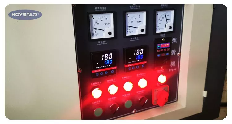 Die Maschine ist mit einem Bedienfeld ausgestattet. Die Trocknungstemperatur kann frei an Ihre Trocknungsanforderungen angepasst werden.