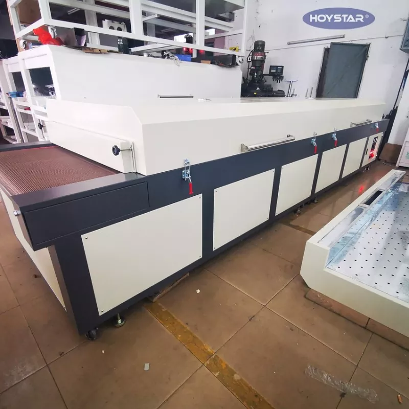 Als professioneller Hersteller in China möchten wir Ihnen die hocheffiziente große Infrarot-Trocknermaschine HOYSTAR mit Förderband anbieten. Geeignet zum Trocknen verschiedener Produkte – wie Textilien, Fahnen, Banner, Aluminiumbleche, Glas, Papier und Kunststoff – nach Prozessen wie Siebdruck, Lackieren, Auftragen von Heißkleber, Tintenstrahldruck und mehr.