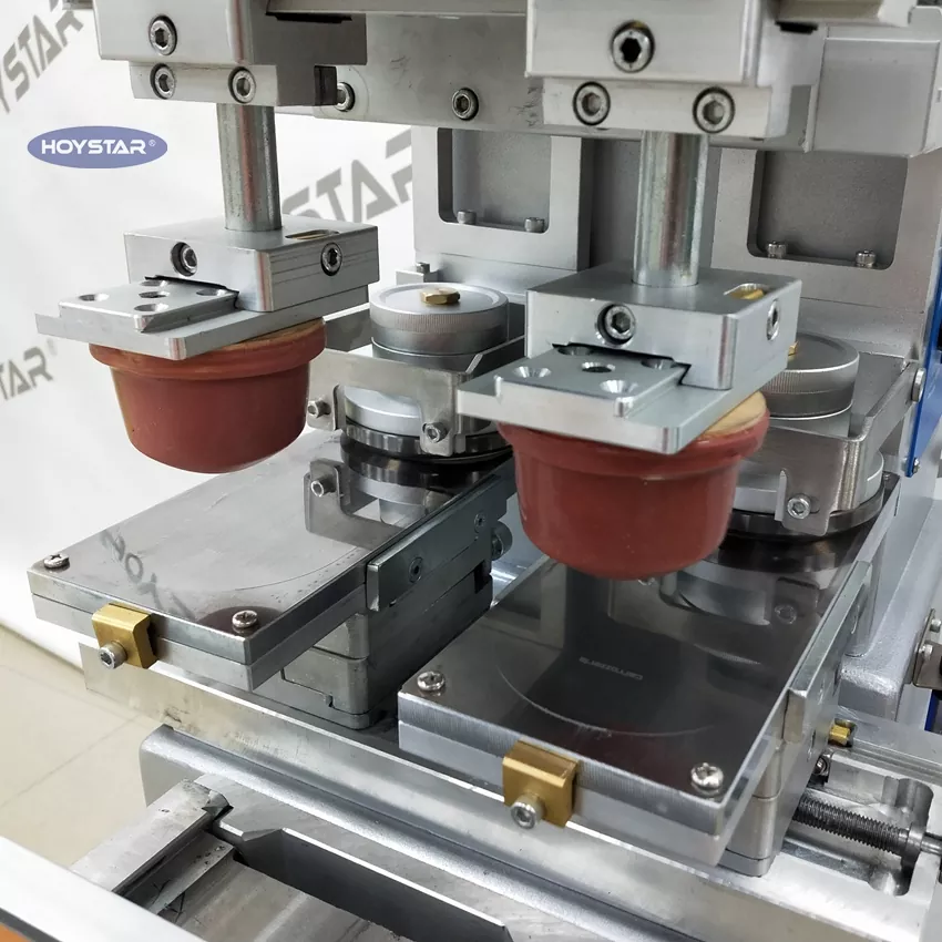 Hot-Tags: Zweifarben-Tampondrucker mit Shuttle-Arbeitstisch