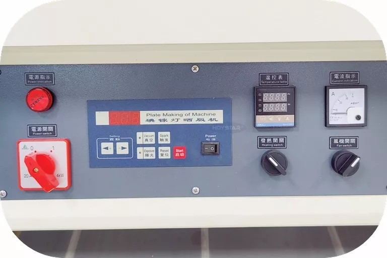 Die UV-Vakuumbelichtungsmaschine mit Trocknung für den Siebdruck ist mit einem Bedienfeld ausgestattet. Die Belichtungszeit und Trocknungszeit der Maschine kann je nach Bedarf frei eingestellt werden